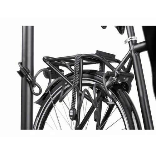 Axa Solid+ ringlås inklusiv 150cm plug-in låsAxa Solid+ er en forsikringsgodkendt lås til montering direkte på stel, der er forberedte til låsemontering med gevind. Låsen leveres med en 150 cm plug-in lås for ekstra sikkerhed, men uden monteringsskruer til stellet. Model Varemærke AXA