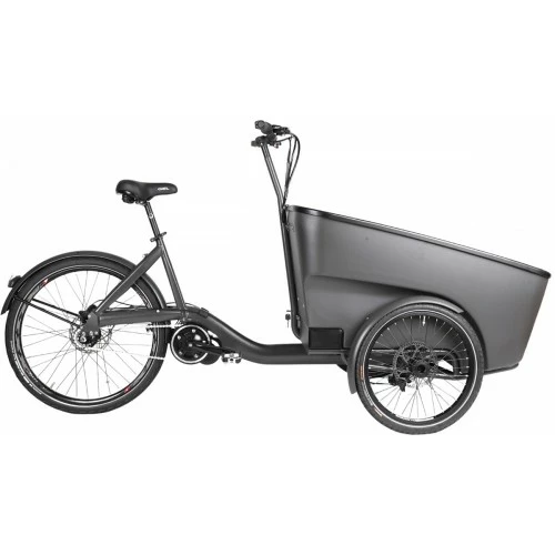 Centurion E Street er en helt ny og sikker ladcykel, der komfortabelt kan transportere 2 børn. Du kan også montere 1 barnestol via ISOFIX-monteringspunkterne. E Street er yderst praktisk og følger Centurion DNA’et for funktionalitet og design, og kan prale af innovative funktioner såsom USB-opladning i kabinen. Det gennemførte stel, nøje udvalgte komponenter og et elsystem fra danske Promovec gør cyklen kraftfuld, manøvrerbar og nem at cykle på.Specifikationer:Mærke CenturionStelfarve MatsortDecal SortGear Enviolo Heavy Duty trinløsForbremse Hydraulisk skivebremseBagbremse Hydraulisk skivebremseFrempind Aluminium sortStyr Aluminium sort, 700 mm.Håndtag SortSadel Selle Bassano Suprema CityDæk (for) Mitas Flash V66 Stop Thorn 20×1,75x2Dæk (bag) Mitas Flash V66 Stop Thorn 26×1,75x2Skærm Aluminium sortLys 2x LED forlygter og 1x LED baglygteElsystem PromovecMotor: Promovec Cargo centermotor 250W – 100NmBatteri: Promovec 17.4 Ah Rækkevidde: Op til 100kmDisplay Promovec Graphic Slim (Bluetooth)Vægt 59,5kg inkl. standardbatteriDimensioner: L: 227cm, H: 120cm, B: 78,5cm Model Varemærke Centurion Design Farve Sort