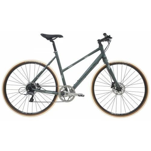 Airborn er en kvik allround cykel skabt til brug hele året rundt. Airborn kombinerer offroad-egenskaberne fra en gravelcykel med komfortegenskaberne fra en sportscykel. Mest bemærkelsesværdigt er modellen er udstyret med brede dæk, som sikrer et stærkt greb på alt underlag og i alt slags vejr. Samtidig fås den med udvendige gear, der både er lette og hurtigtskiftende.Specifikationer:Mærke: MBKForgaffel: AluminiumStelfarve: Mat mørkegrønDecal: Grøn/sølvGear: 8 udv.Bagskifter: Shimano Claris R2000Skiftegreb: Shimano Claris SL-R2000 1x8Kranksæt: Aluminium sølv 46TForbremse: Hydraulisk skivebremseBagbremse: Hydraulisk skivebremseFrempind: Aluminium sortStyr: Aluminium sortHåndtag: Gel sortSadel: SortHjulstørrelse: 28in (700)Dæk: Panaracer GravelKing SK 700x32CVægt: 14kg Model Varemærke MBK Type Kvinde Design Farve Grøn Størrelse 53cm