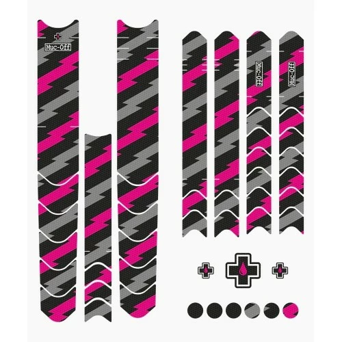 Ridser og stenslag på din stolthed og kæreste eje..? Nej for helvede – KÆMPE NEJ TAK! Bliv beskyttet med Muc-Off Bike Protection Series.Vi tilbyder to separate sæt designet til MTB og EMTB’er og fås i flere episke grafiske muligheder, der passer til enhver stil. Frame Protection Kit består af flere universelt designede former og størrelser til at dække alle højrisikoområder på din cykel.Frame Protection Kit, der er udviklet fra bunden og med det nye proprietære Muc-Off Cube-Tec-materiale, danner en barriere omkring din cykel, der er stærk nok til at modstå de hårdeste stød, samtidig med at den er fleksibel nok til at passe stort set enhver stelgeometri.Hvert af de 45 dele, der er indeholdt i sættet, har en ultra-stærk 3M selvklæbende bagside, hvilket betyder, at de er super lette at installere og vil forblive solidt på plads uanset forholdene.DH-ENDURO-TRAIL FRAME BESKYTTELSESSÆTSkrårørets breddemål: 45-70 mm breddeNem at påføre: Du skal blot gøre rent og installere!Ultra-Tough Cube-Tec-beskyttelse beskytter mod ridser, skrammer, stenslag, kabelgnidninger og andre skader på dit stelHoldbar, vejrbestandig 3M klæbemiddel45-delt pakke er designet til at passe til de fleste DH/ENDURO/TRAIL cyklerFås i flere fantastiske designs! Model Varemærke Muc-Off Design Farve Pink