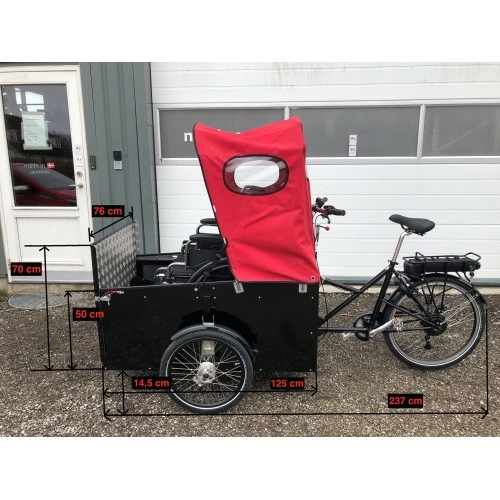 Nihola Flex 2.0 giver kørestolsbrugeren en unik mulighed for at opleve glæden ved at komme fra A til B og samtidigt få luft i håret. Rampen gør det muligt at køre op på ladet med kørestol (kræver lidt tilvænning).Nihola Flex 2.0 leveres som en komplet cykel med Shimano Nexus 8 gear, håndbetjente bremser, rød kaleche, godkendt lås og med kraftig centermotor specielt lavet til ladcykler od med et 12 Ah batteri der giver en rækkevide på ca 30km (større batteri kan tilvælges efter aftale), Alle Nihola Cykler er bestillingsvarer og laves ud fra dine ønsker og behov. Leveringstiden kan variere fra 14 dage uden for sæson op til 60 dage i højsæson. Er du i tvivl om nuværende leveringstid, så kontakt os på mail [email protected] bestilling af Nihola, fremsender vi ordrebekræftelse som bedes gennemlæses Evt tilbehør og udstyr tilvælges inden bestilling gennemføres ved kassen. Alt udstyr bliver monteret inden levering til dig.Prisen er inkl. moms. Model Varemærke Nihola Design Farve Sort