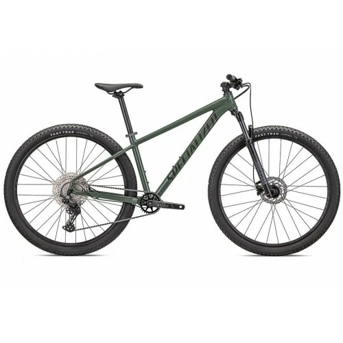 Rockhopper Elite er en helvedes masse cykel for pengene. -Luftaffjedret gaffel. Lad mig præsentere dig for din nye ven, Judy. -Kræsen, når det kommer til din drivlinje? Du finder ingen fejl og ingen stigning er for stejl med et bredt udvalg af Shimano Deore 1×11-drivlinje. -Hvorfor stoppe der? Det gjorde vi ikke, for at give dig fornøjelsen af at stoppe dig selv med Shimanos ivrige og kræftige MT200 hydrauliske skivebremser. -Men magien ligger virkelig i hvordan de alle samles til en Rockhopper, der serverer singletrack med en dejlig stor side af ‘Wow, så det er, hvad en rigtig cykel føles som”Et hjerte af guld, præsenteret i vores lette, men alligevel holdbare Premium A1 Aluminium, Rockhoppers butted aluminiumsramme har hydroformede top- og downtubes for at holde vægten lav og styrken høj, alt imens den giver øget standover-afstand, glat intern kabelføring og dropper-post kompatibilitet. Med det mål at sikre, at Rockhopper tilbyder både den bedste pasform og bedste ydeevne for enhver person, uanset deres mål, har vi parret hver Rockhopper stelstørrelse med den optimale hjulstørrelse. Resultatet er en Rockhopper, der passer til enhver rytter, og forsikringen om, at hver Rockhopper ruller på det bedste håndteringshjul for dens stelstørrelse.Et frisk pust til dette prispunkt – og meget nord for det,RockShox’s Judy SoloAir bringer luftfjedret følsomhed og ydeevne til cyklen. TurnKey-dæmperen er effektiv på mountainbike spor, så du kan fokusere på det, der venter forude.Shimanos 1×11 brede 11-trins Deore gearskifte kan prale af både den stamtavle og ydeevne, som legender er lavet af.Tubeless ready fælge og dæk holder dine muligheder åbne og trækkraft på 100%.CYKEL SPECIFIKATIONER:Ramme: Specialiseret A1 premium butted Alu, intern kabelføring, 135×9 mm smedede dropouts, kædestagsmonteret skivebremse, udskiftelig Alu gearhænger, stealth bagagebære monteringer, dropper post kompatibelGaffel: RockShox Judy, Solo Air, 46 mm offset, QR, 80/90/100 mm vandring (størrelsesspecifik), stålstilkFremppind: 3D-smedet Alu, 31,8 mm, 7-graders stigningStyr: Stout Mini Rise, Alu, 9-graders tilbagesweep, 15 mm stigning, 31,8 mmSadel: Bridge Sport, Stålskinner, 155/143mmForbremse: Shimano BR-MT200, hydraulisk skive, 180mmHåndtag: Specialiseret MTB-greb, låstBagbremse: Shimano BR-MT200, hydraulisk skive, 180mmSkiftegreb: Shimano Deore M5100, 11 gearBagskifter: Shimano Deore M5100, SGS, 11-gearsKassette: Shimano Deore, 11spd, 11-51tKæde: KMC X11EPT, 11-gears, anti-korrosionsbelægning med genanvendelig Missing LinkKranksæt: Stout 1x, smedet AluKrankbox: Firkantet, 73 mm, indvendige lejer, 122,5 mm akselPedaler: SBC-54 flad pedalFælge: Specialiseret Alu, hookless, Slangeløs klar, 25 mm indvendig breddeFornav: Formel DC-20, 6-bolt, skive, 100×9 mm mellemrum, hurtigudløserBagnav: Formel DC-22, 6-bolts frinav, skive, 135×9 mm afstand, quick-releaseFordæk: Specialiseret Fast Trak, Control Casing, T5 Compound, 29×2,35Bagdæk: Specialiseret Fast Trak, Control Casing, T5 Compound, 29×2,35Eger: Rustfri, 14gSlanger: Presta, 40mm ventilSadelpind: Alu, 2-bolt klemme, 30,9 mmSadelklamper: Aluminium, quick release, 34,9 Model Varemærke Specialized Design Farve Grøn Størrelse Medium