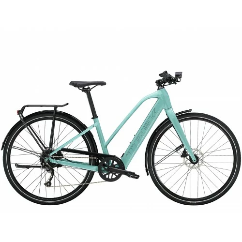 FX+ 2 Stagger er en let elcitybike, der er designet til at gøre daglige udflugter hurtigere og sjovere. Den har et intuitivt og naturligt følende pedalhjælpesystem, der gør det til en leg at udforske din by og køre op ad bakker. Nyttigt tilbehør som f.eks. en bagagebærer og skærme giver denne cykel endnu mere alsidighed.Den er det rigtige valg for dig, hvis…Du vil have en let, brugervenlig elcitybike, der giver et godt boost til daglige ærinder, pendling og ture for sjov rundt i byen.Teknologien:Et let alustel med et Stagger-design, der gør det nemmere at stige på og af, Treks patenterede pedalhjælpesystem med en navmotor (250 W, 40 Nm), der hjælper op til 25 km/t, og et 250 Wh batteri med en rækkevidde på op til 56 kilometer pr. opladning. Og hurtige 700c hjul, hurtigt rullende, men stabile 40c dæk med reflekterende sidevægge, en pålidelig 9-trins Shimano transmission, hydrauliske skivebremser, integrerede lygter drevet af batteriet, en MIK-kompatibel bagagebærer, skærme og et støtteben.Kort sagt:Al alsidigheden og tilliden fra FX med et elektrisk boost, der hjælper dig med at gøre mere og komme længere omkring. FX+ leveres også med køreklart tilbehør som en bagagebærer og skærme, der gør det nemmere at pendle og køre ærinder.Hvorfor du vil elske det…-Dette er vores letteste elcitybike, der gør det nemmere at manøvrere, mens du parkerer, og mindre besværlig at bære op ad trapper-Pedalhjælpesystemet har en navmotor, der giver en mere naturlig kørefornemmelse, og en enkel LED-fjernbetjening, der angiver din hjælpeindstilling-Cyklen er klar til brug med tilbehør som skærme, lygter og en MIK-kompatibel bag-bagagebærer-Få dobbelt så meget rækkevidde med et 250 Wh plug-and-play Range Extender-batteri, der bruger vandflaskeholderbeslag til fastgørelse til stelletSpecifikationer:Stel: Alpha Gold Aluminum, indvendig kabelføring, indbygget batteri, studser til bagagebærer og skærme, Flat Mount-skivebremser, studs til støttefod, 144,5 mm navmotorbredde (ydermål mellem låsemøtrikker)Forgaffel: FX+ alloy, internal brake routing, fender mounts, rack mounts, ThruSkew 5mm bolt-on skewerFornav: Formula DC-20, alu, 6-bolts, 5×100 mm QRBagnav: G2-navmotorFælg: Bontrager Connection, dobbeltvægget, 36 huller, 20 mm bredde, racerventilDæk: Bontrager H2 Comp, refleksstriber, stålkanttråd, 30 tpi, 700x40cMaks. dækstørrelse 50c uden skærme, 45c med skærmeGearskifter: Shimano Altus M2010, 9-gearBagskifter: Shimano Altus M2000, lang gearskifterarm*Kranksæt:Størrelse: S, MProwheel Pro alu, 42T stål Narrow-Wide kædehjul, 170 mm længdeStørrelse: L, XLProwheel Pro alu, 42T stål Narrow-Wide kædehjul, 175 mm længdeKrankboks: Momentsensor, T47 gevind, 122,5 mm akselKassette: Shimano HG200, 11-36, 9-gearKæde: KMC E9S, 9 gearPedal: VPE-857Maks. klingestørrelse: 42TSadel: Bontrager Sport Women’s*Sadelpind: Størrelse: S, MBontrager alu, 31,6 mm, 12 mm offset, 330 mm længdeStørrelse: L, XLBontrager alu, 31,6 mm, 12 mm offset, 400 mm længde*Styr:Størrelse: S, M, LBontrager alu, 31,8 mm, 15 mm højde, 600 mm breddeStørrelse: XLBontrager alu, 31,8 mm, 15 mm højde, 660 mm breddeHåndtag: Bontrager XR Endurance Comp, lock-on*Frempind:Størrelse: S, M, LBontrager Comp, 31,8 mm, Blendr-kompatibel, 7 grader, 90 mm længdeStørrelse: XLBontrager Comp, 31,8 mm, Blendr-kompatibel, 7 grader, 100 mm længdeBremseskive: Shimano RT26, 6-bolt, 160 mmBremsesæt: Promax DSK-927 hydraulisk skivebremse, Flat Mount, 160 mm rotorRotorstørrelse: Maks. bremseskivestørrelse: 160 mmBatteri: 250 WhCharger: 2A, 42V ud, 100V-240V AC indController: Bluetooth-displayLygte for: Herrmans MR4, 120 lumen LEDLygte bag: Spanninga SoloStøttefod: Pletscher Comp 18Skærme: SKS plastVægt: M – 17.82 kg / 39.29 lbsVægtgrænse: Den maksimalt tilladte vægtbelastning for denne cykel (totalvægt for cykel, rytter og bagage) er 136 kg. Model Varemærke Trek Design Farve Turkis Størrelse Medium