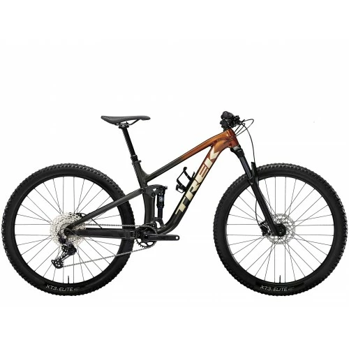 Top Fuel 5 er en full-suspension MTB, der er lige dele effektiv og teknisk kompetent. Den absorberer ujævnheder og forhindringer ned ad bakke, men er stadig en raket opad og ligeud. Det lette og stærke alustel er opbygget med dele, der er udvalgt til at sikre gode præstationer og en stærk pris, så den er perfekt som din første full-suspension trailcykel.Den er det rigtige valg for dig, hvis…Du er blevet vild med mountainbiking, og nu er du klar til mere greb i underlaget, bedre evner i terrænet og en mere sikker følelse med en full suspension-cykel. Du vil have et robust stel og solide dele, der leverer god performance uden at sprænge dit budget.TeknologienEt let aluminiumsstel med indvendigt opbevaringsrum, RockShox Recon 130 mm forgaffel, X-Fusion Pro 2-bagdæmper med 120 mm vandring og en Shimano Deore 1×12 geargruppe med et stort gearområde. Desuden Tubeless Ready-fælge, hydrauliske skivebremser og en dropper-sadelpind.Kort sagtEn solid full suspension-cykel til en budgetvenlig pris. Den mest økonomiske model af Top Fuel er lavet til fart og sjov i en skov – eller stort set alle andre steder.Specifikationer:*Bemærk – specifikationerne gælder for alle størrelser, medmindre de er angivet separatStel: Alpha Platinum Aluminium, indvendig opbevaring, konisk kronrør, Knock Block 2.0, indvendig guided kabelføring, skjold på skrårør, vippeled i magnesium, Mino Link, ABP, Boost148, 120 mm vandringForgaffel: RockShox Recon Silver RL, Solo Air, Motion Control-dæmper, lockout, konisk styrrør, 42 mm offset, Boost110, 15 mm Maxle Stealth, 120 mm vandringStøddæmper: X-Fusion Pro 2, dæmper m. 2 indstillinger, 185 mm x 50 mmMaks. kompatibel forgaffelvandring: 130 mm (541 mm aksel-til-krone)Fornav: Bontrager alu, 6-bolts, Boost110, 15 mm gennemgående akselStikaksel til baghjul: Bontrager Switch gennemgående aksel, aftageligt grebFælg: Alex MD35, passer til Tubeless, 32-huller, 35 mm bredde, racerventilDæk: Bontrager XR4 Team Issue, Tubeless Ready, Inner Strength dæksider, 120 tpi, aramid kanttråd, 29×2,40″Maks. dækstørrelse: Stel: 29×2,5″ Forgaffel: se producentGearskifter: Shimano Deore M6100, 12 gearBagskifter: Shimano Deore M6100, lang gearskifterarm*Kranksæt: Størrelse: S, M, M/L, LShimano MT512, 30T kædehjul, 55 mm kædelinje, 170 mm længdeStørrelse: XL, XXLShimano MT512, 30T kædehjul, 55 mm kædelinje, 175 mm længdeKrankboks: Shimano BB-MT501 BSA*Kassette:Størrelse: S, M, M/L, L, XL, XXLSunRace CSMZ800 11-51, 12 speedStørrelse: S, M, M/L, L, XL, XXLShimano Deore M6100, 10-51, 12 gearKæde: Shimano Deore M6100Maks. klingestørrelse: Maks. 36T (oval – 34T), min. 28TSadel: Bontrager Arvada, stålskinner, 138 mm bredde*Sadelpind:Størrelse: STranzX JD-YSI-22PLQ, 100 mm vandring, indvendig kabelføring, 34,9 mm, 346 mm længdeStørrelse: M, M/LTranzX JD-YSI-22PLQ, 150 mm vandring, indvendig kabelføring, 34,9 mm, 454 mm længdeStørrelse: L, XL, XXLTranzX JD-YSI-22PLQ, 170 mm vandring, indvendig kabelføring, 34,9 mm, 497 mm længde*Styr:Størrelse: S, M, M/L, L, XL, XXLBontrager Rhythm Comp, alu, 31,8 mm, 15 mm rise, 750 mm breddeStørrelse: S, M, M/L, L, XL, XXLBontrager alu, 31,8 mm, 15 mm rise, 750 mm breddeHåndtag: Bontrager XR Trail Comp, låsekrave af nylonFrempind: Bontrager Rhythm Comp, Knock Block, 31,8 mm, 0 grader, 50 mm længdeBremse: Shimano MT200 hydrauliske skivebremser*Bremseskive:Størrelse: S, M, M/L, L, XL, XXLShimano RT26, 6-bolt, 180 mmStørrelse: S, M, M/L, L, XL, XXLShimano RT26, 6-bolt, 160 mmBremsesæt: Shimano MT200 hydrauliske skivebremserRotorstørrelse: Maks. bremseskivestørrelse: Forrest (se forgaffelproducent), bagest 180 mmVægt: M – 15,29 kgVægtgrænse: Den maksimalt tilladte vægtbelastning for denne cykel (totalvægt for cykel, rytter og bagage) er 136 kg. Model Varemærke Trek Design Farve Kobber Størrelse Large