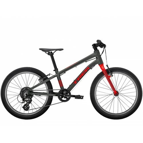 Wahoo 20 er en let, enkel og praktisk hybridcykel til børn, der vil have mest muligt ud af hver eneste cykeltur. Denne alsidige cykel er bygget til at være nem i brug: Den har lav vægt, gode evner på forskellige underlag og 1×8 gear med bredt gearområde hvor end dit barn kommer frem. Til børn i alderen 6-8, som er 114-134 cm.Den er det rigtige valg for dig, hvis…Cykling skal jo være sjovt, og dit barn skal have en cykel, der er nem at cykle på, nem at styre og kan bruges til mange ting. Uanset om det er en familiecykeltur eller cykling til skole, giver Wahoo den ene gode oplevelse efter den anden.TeknologienDet lette stel af Alpha Aluminum er nemt for et barn at løfte og styre, dækkene har godt greb på alle underlag, og 1×8 gearet er nemt at skifte, så den lille cyklist kan nøjes med nyde cyklingen!Kort sagtWahoo er en børnecykel, som er god til det hele. Den er let, praktisk, nem at bruge og sjov at cykle på. Desuden er den nem at udstyre med tilbehør til den lille cyklists helt egen cykel!Specifikationer:Stel: Alpha Silver aluminium, 20″Forgaffel: Aluminum 20″Fornav: Formula FM21 aluBagnav: Formula FM32 aluFælge: 20″ 28-huller, aluDæk: 20×1,95″, alsidigt dækmønsterSkiftegreb: Shimano Acera M360, 8-gearBagskifter: Shimano Altus M310Kranksæt: Alu, 140 mm, 32TKrankboks: Løse kuglerKassette: Shimano HG31, 11-34, 8-gearKæde: KMC Z51Pedaler: Dialed 9/16″, platformSadel:Børnesadel, polstretSadelpind: Bontrager Approved, alu, 27,2 mmStyr: Bontrager alu, 31,8 mm, 15 mm riseHåndtag: Dialed, KratonFrempind: Bontrager alu, 31,8 mm, 7-graders, Blendr-kompatibelHeadset: VP 1-1/8″, semi-integreretBremsesæt: Alu med lineært træk, Dialed alugrebVægt: 8,89 kg Model Varemærke Trek Design Farve Grå Størrelse 20″