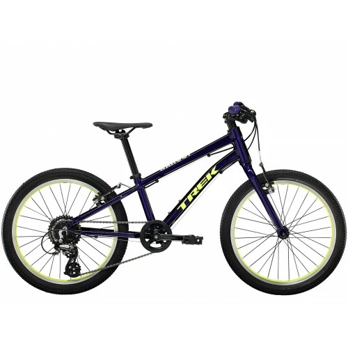 Wahoo 20 er en let, enkel og praktisk hybridcykel til børn, der vil have mest muligt ud af hver eneste cykeltur. Denne alsidige cykel er bygget til at være nem i brug: Den har lav vægt, gode evner på forskellige underlag og 1×8 gear med bredt gearområde hvor end dit barn kommer frem. Til børn i alderen 6-8, som er 114-134 cm.Den er det rigtige valg for dig, hvis…Cykling skal jo være sjovt, og dit barn skal have en cykel, der er nem at cykle på, nem at styre og kan bruges til mange ting. Uanset om det er en familiecykeltur eller cykling til skole, giver Wahoo den ene gode oplevelse efter den anden.TeknologienDet lette stel af Alpha Aluminum er nemt for et barn at løfte og styre, dækkene har godt greb på alle underlag, og 1×8 gearet er nemt at skifte, så den lille cyklist kan nøjes med nyde cyklingen!Kort sagtWahoo er en børnecykel, som er god til det hele. Den er let, praktisk, nem at bruge og sjov at cykle på. Desuden er den nem at udstyre med tilbehør til den lille cyklists helt egen cykel!Specifikationer:Stel: Alpha Silver aluminium, 20″Forgaffel: Aluminum 20″Fornav: Formula FM21 aluBagnav: Formula FM32 aluFælge: 20″ 28-huller, aluDæk: 20×1,95″, alsidigt dækmønsterSkiftegreb: Shimano Acera M360, 8-gearBagskifter: Shimano Altus M310Kranksæt: Alu, 140 mm, 32TKrankboks: Løse kuglerKassette: Shimano HG31, 11-34, 8-gearKæde: KMC Z51Pedaler: Dialed 9/16″, platformSadel:Børnesadel, polstretSadelpind: Bontrager Approved, alu, 27,2 mmStyr: Bontrager alu, 31,8 mm, 15 mm riseHåndtag: Dialed, KratonFrempind: Bontrager alu, 31,8 mm, 7-graders, Blendr-kompatibelHeadset: VP 1-1/8″, semi-integreretBremsesæt: Alu med lineært træk, Dialed alugrebVægt: 8,73 kg Model Varemærke Trek Design Farve Lilla Størrelse 20″